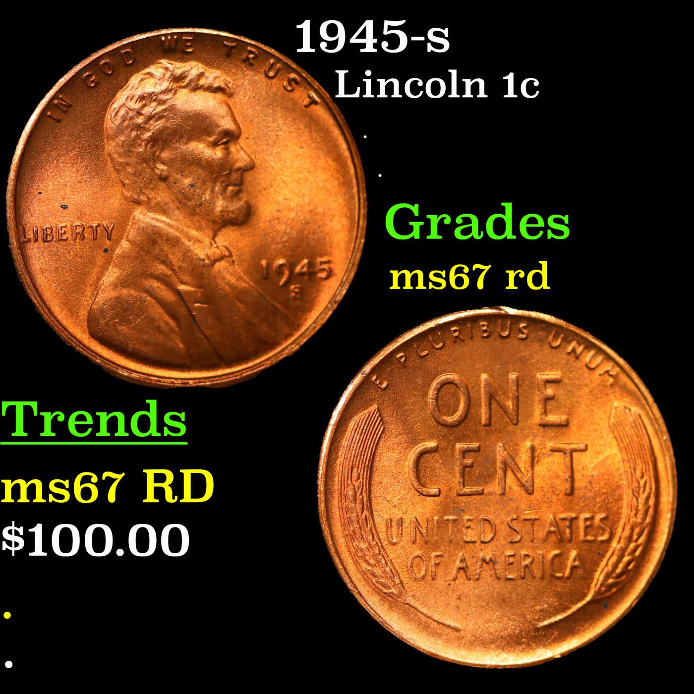 1945-s Lincoln Cent 1c Grades GEM++ Unc RD.