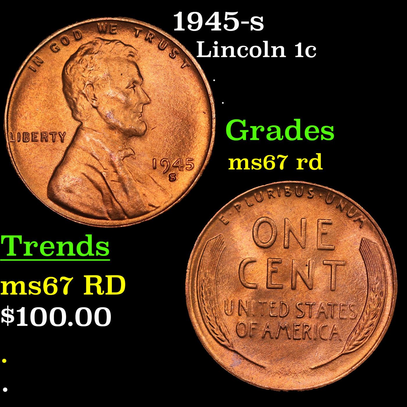 1945-s Lincoln Cent 1c Grades GEM++ Unc RD.