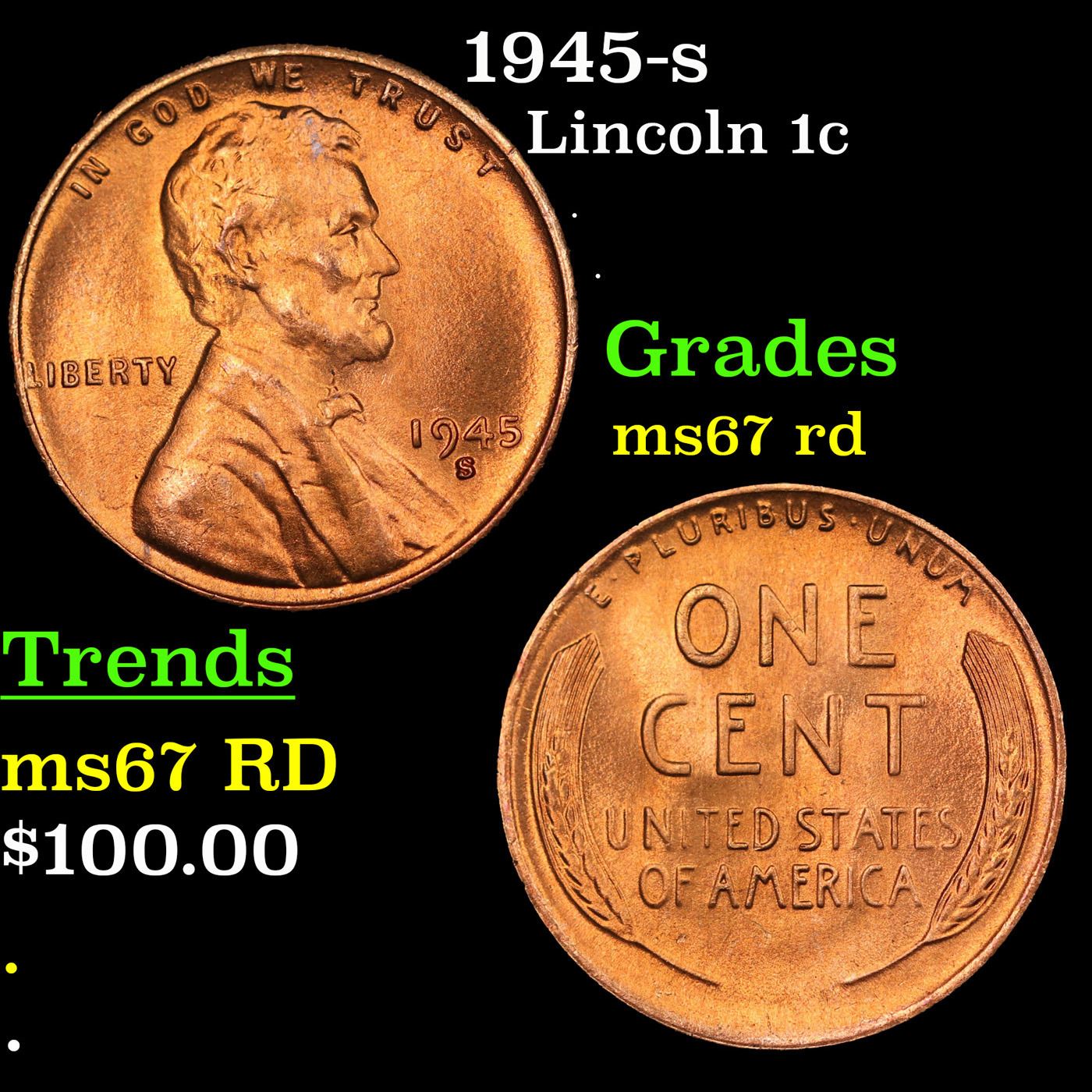 1945-s Lincoln Cent 1c Grades GEM++ Unc RD.