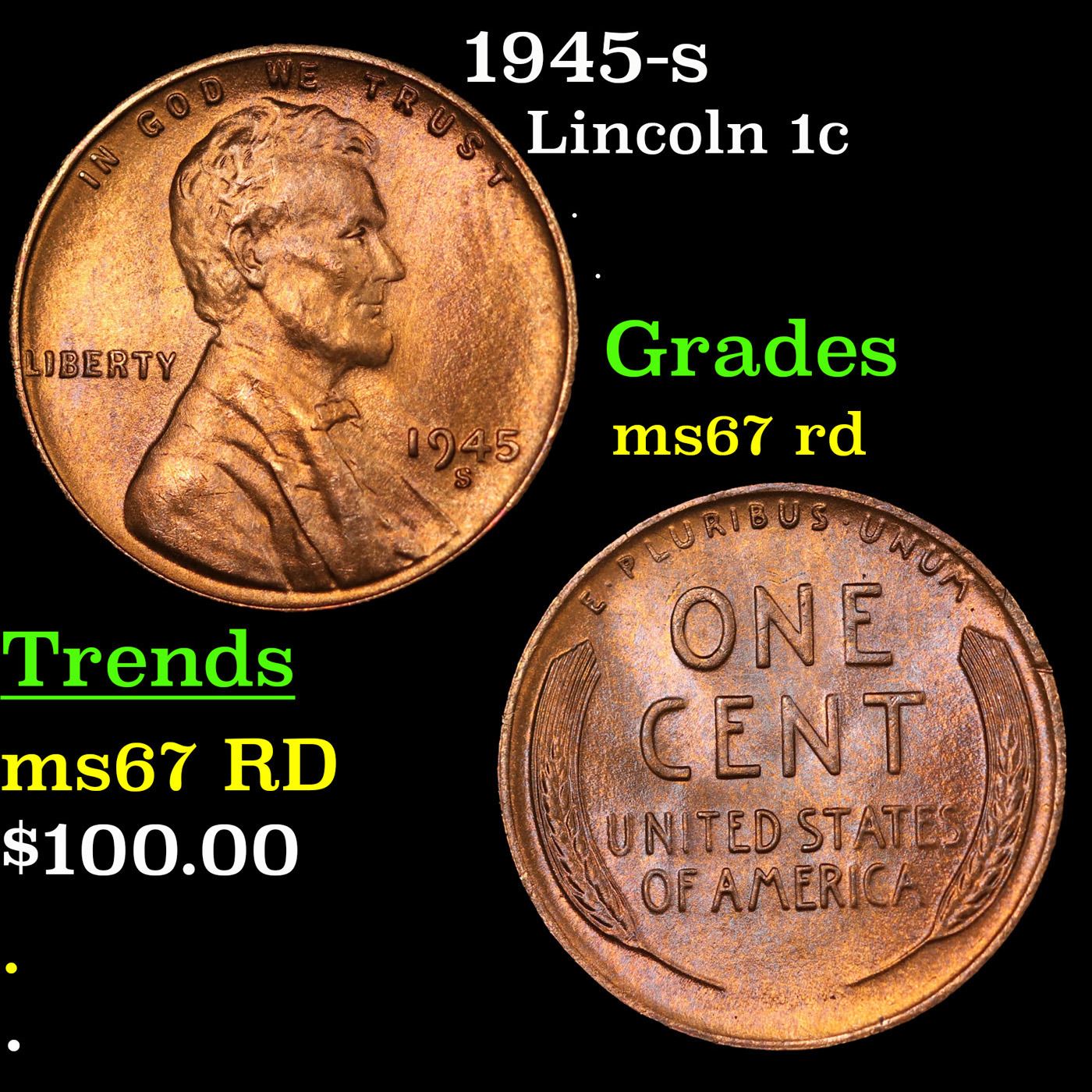 1945-s Lincoln Cent 1c Grades GEM++ Unc RD.