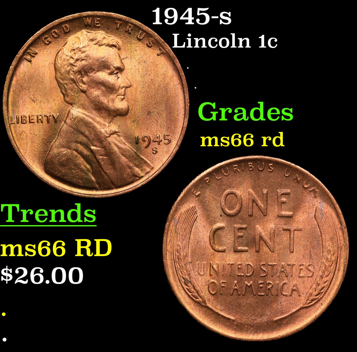 1945-s Lincoln Cent 1c Grades GEM+ Unc RD.