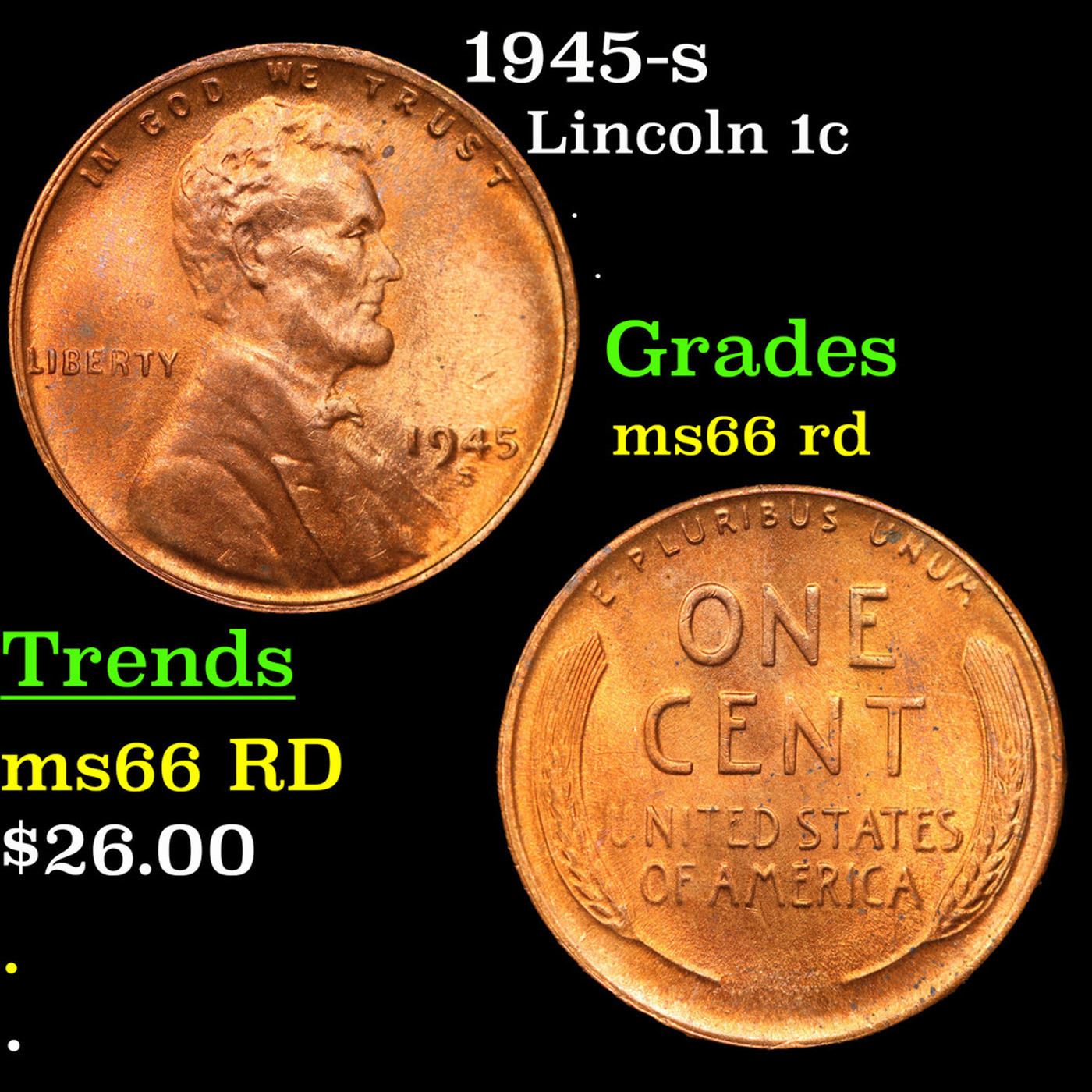 1945-s Lincoln Cent 1c Grades GEM+ Unc RD.