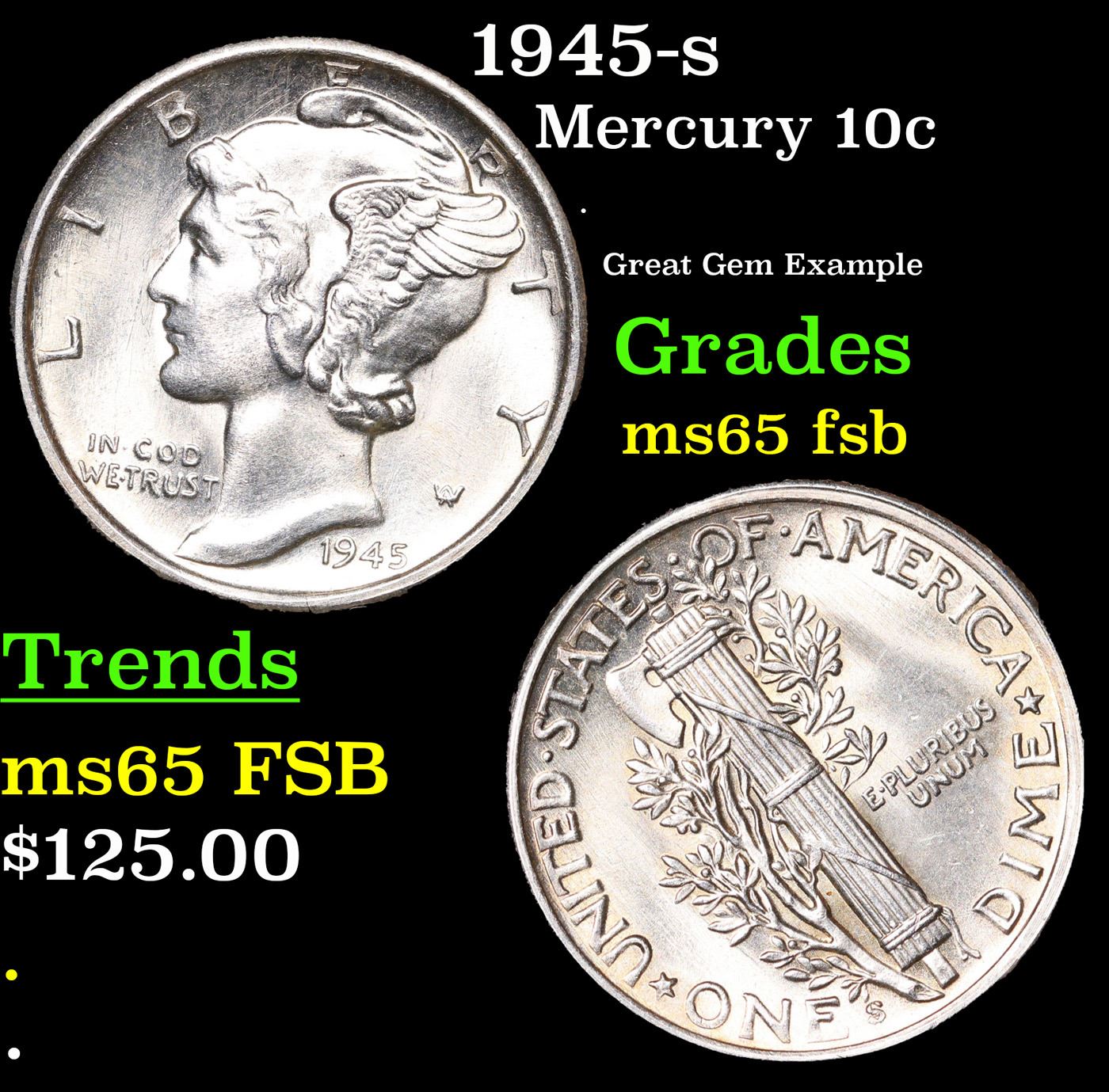 1945-s Mercury Dime 10c Grades GEM FSB.