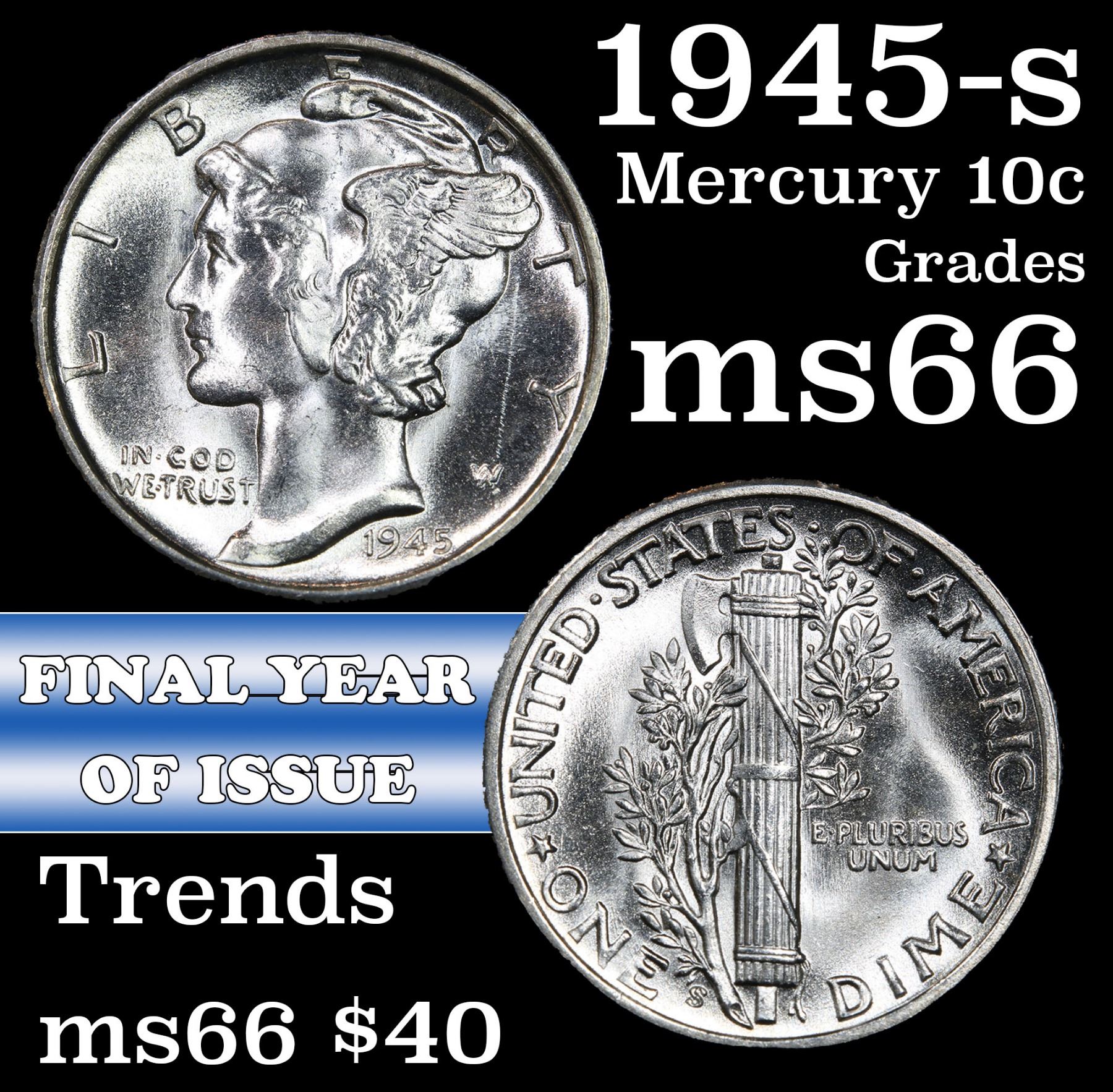 1945-s Mercury Dime 10c Grades GEM+ Unc.