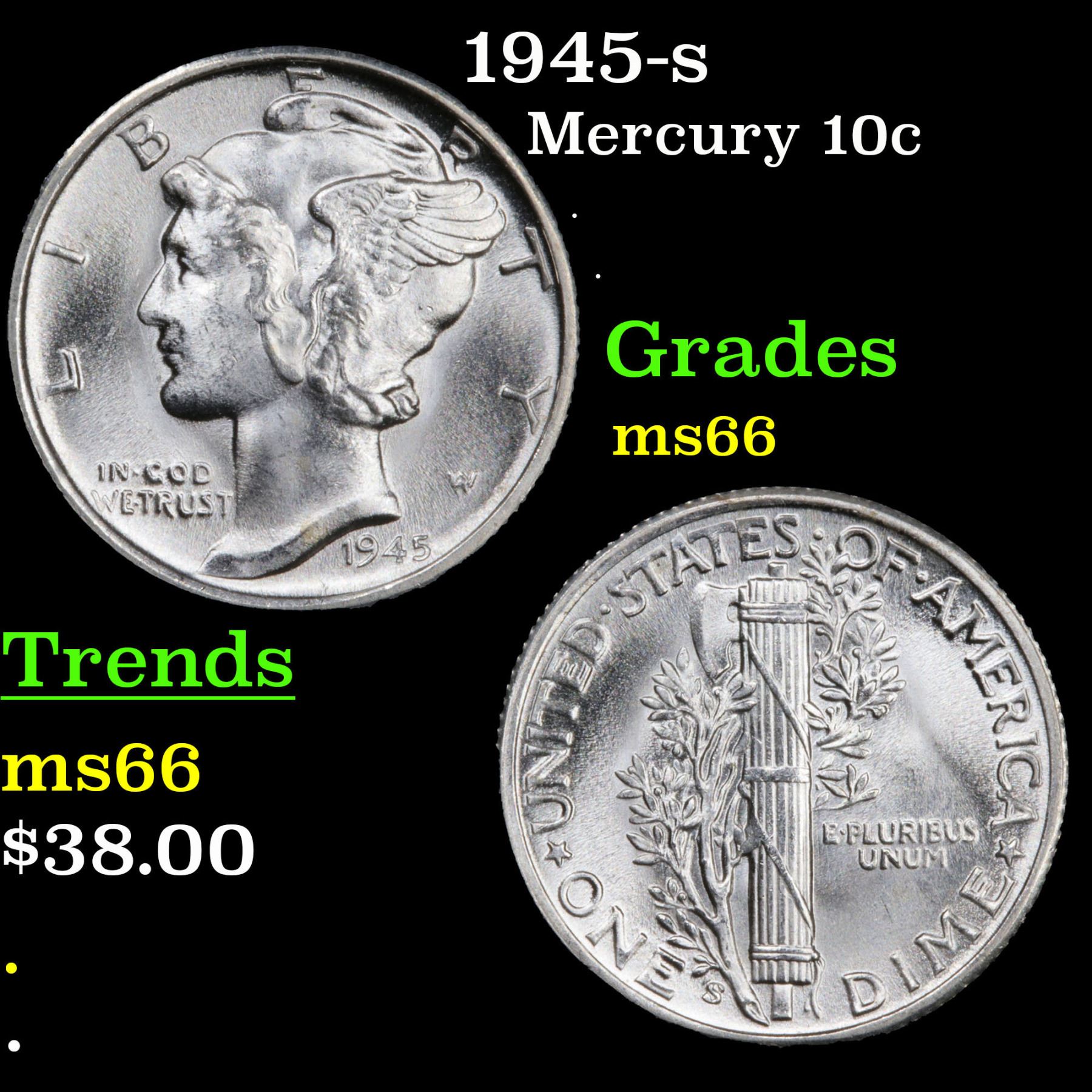 1945-s Mercury Dime 10c Grades GEM+ Unc.
