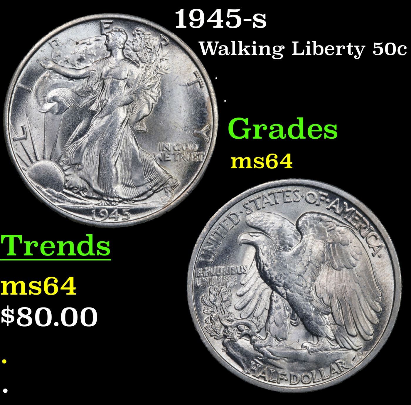 1945-s Walking Liberty Half Dollar 50c Grades Choice Unc.