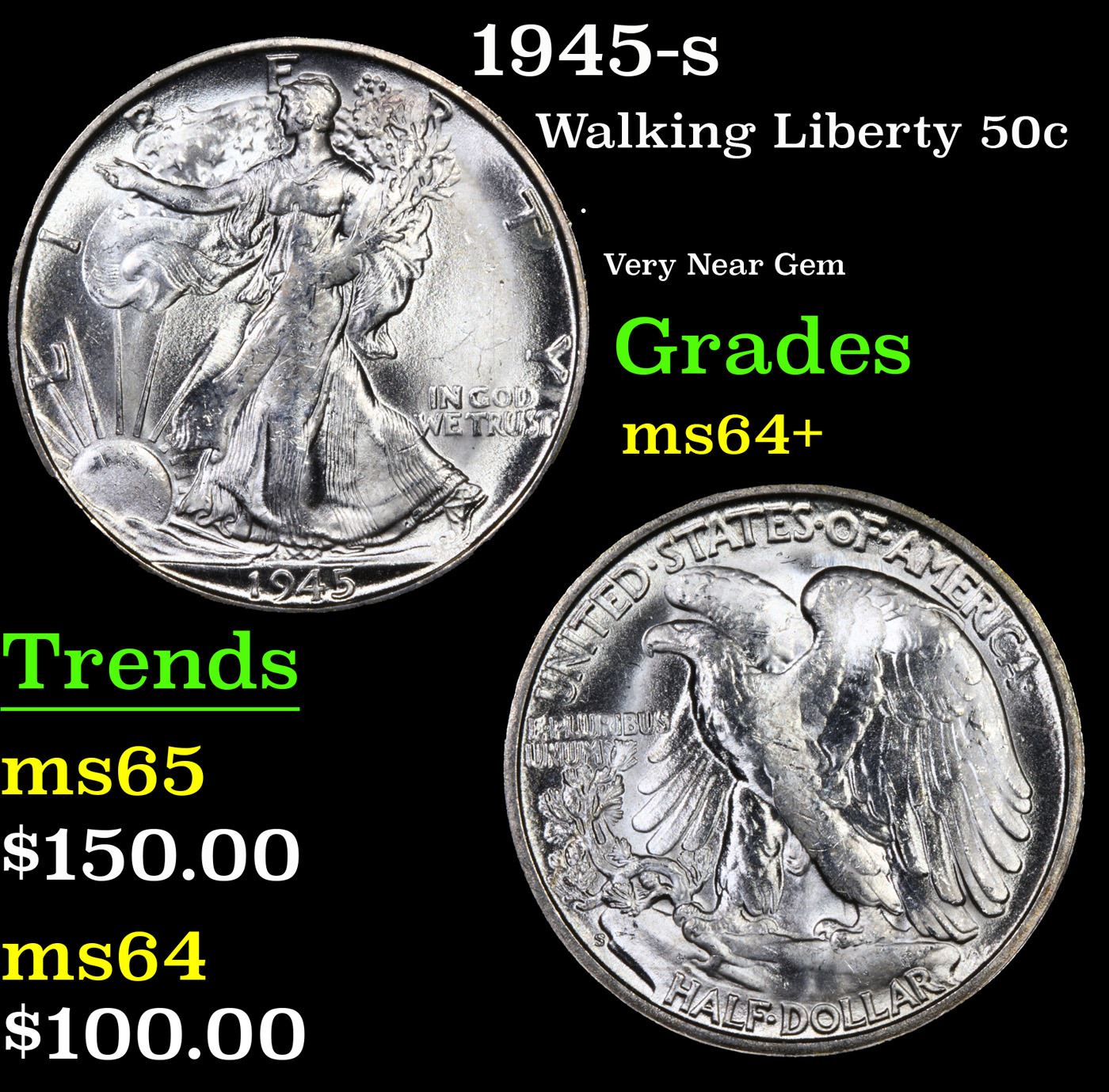 1945-s Walking Liberty Half Dollar 50c Grades Choice+ Unc.
