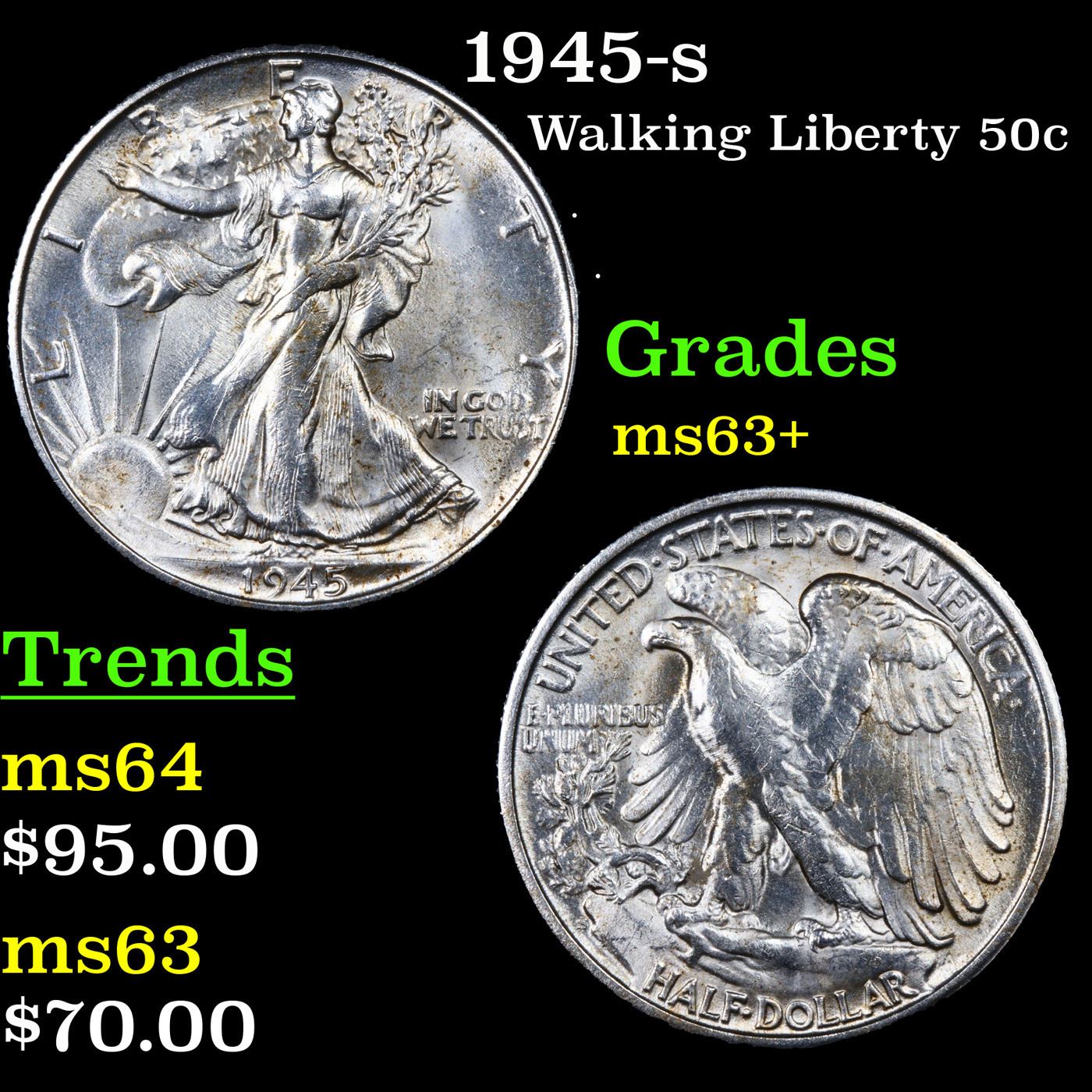 1945-s Walking Liberty Half Dollar 50c Grades Select+ Unc.