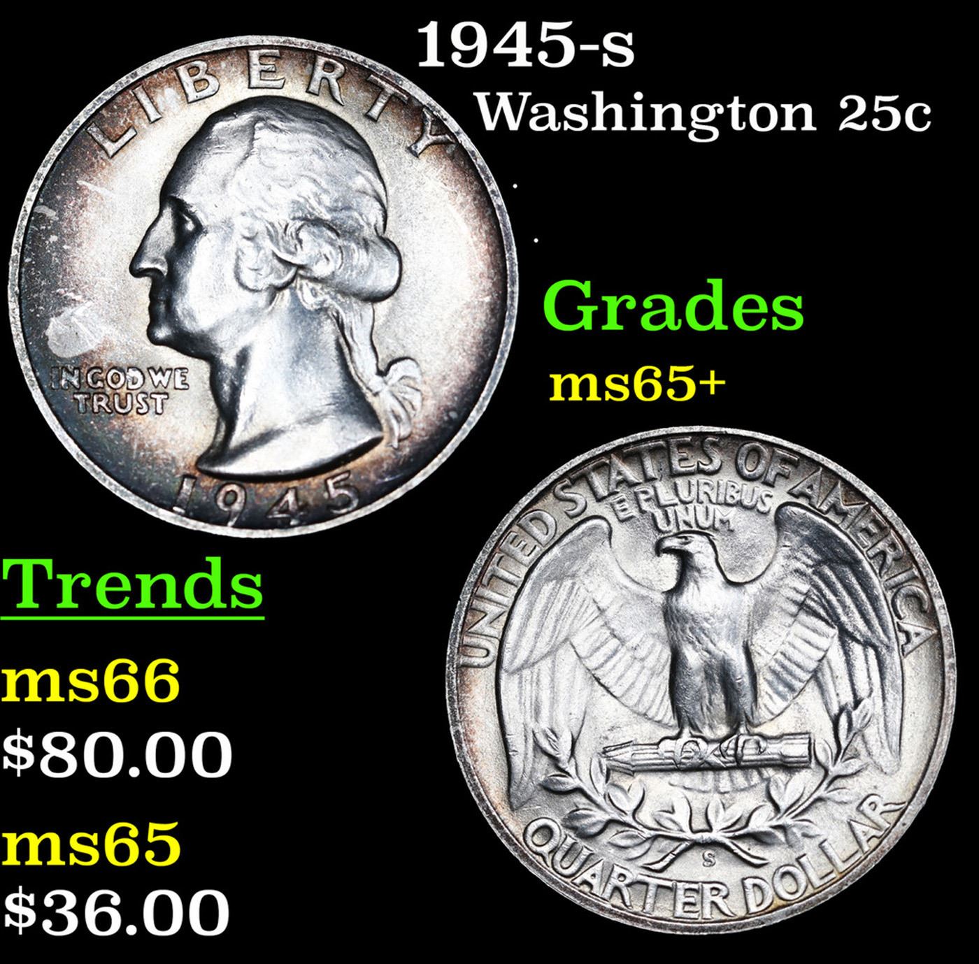 1945-s Washington Quarter 25c Grades GEM+ Unc.