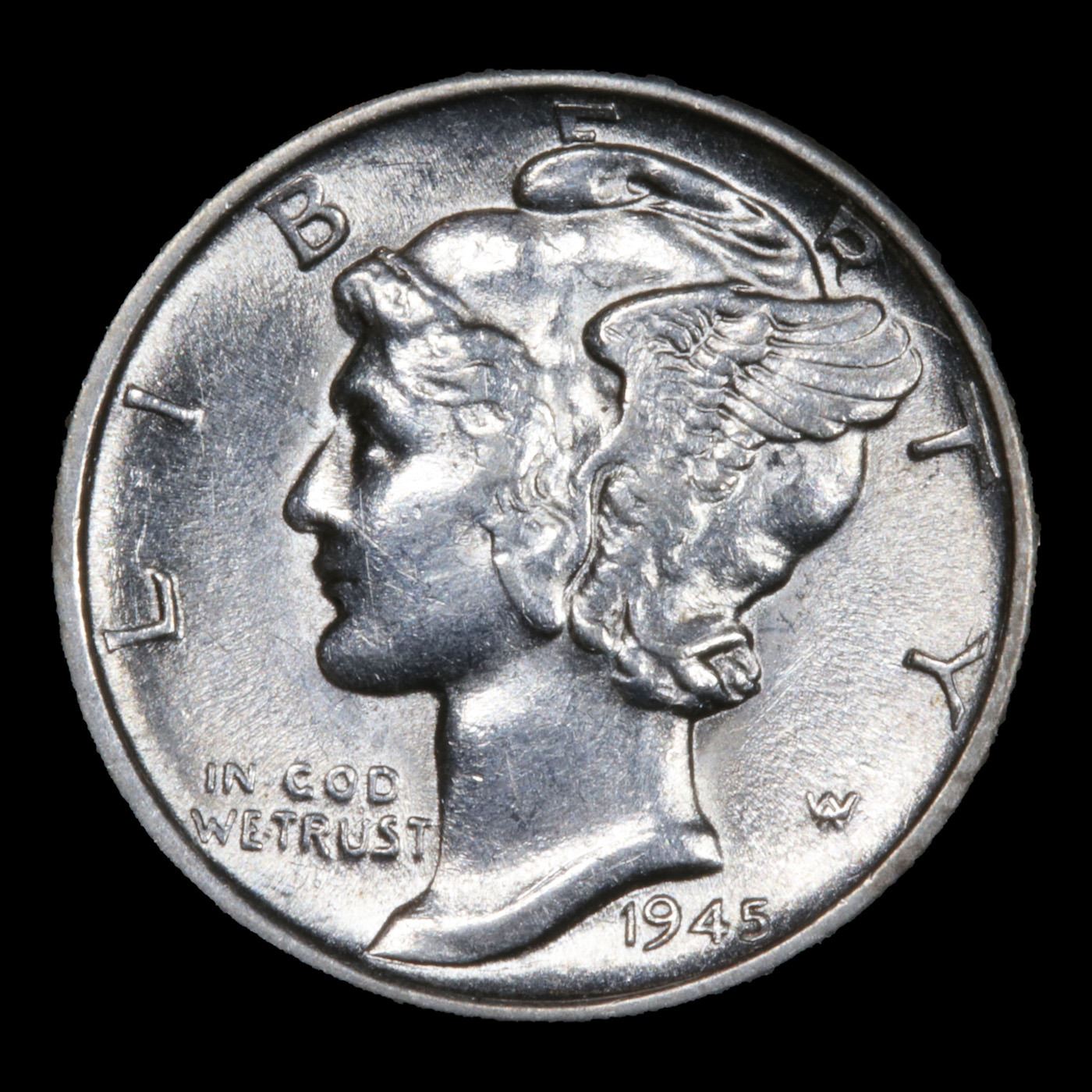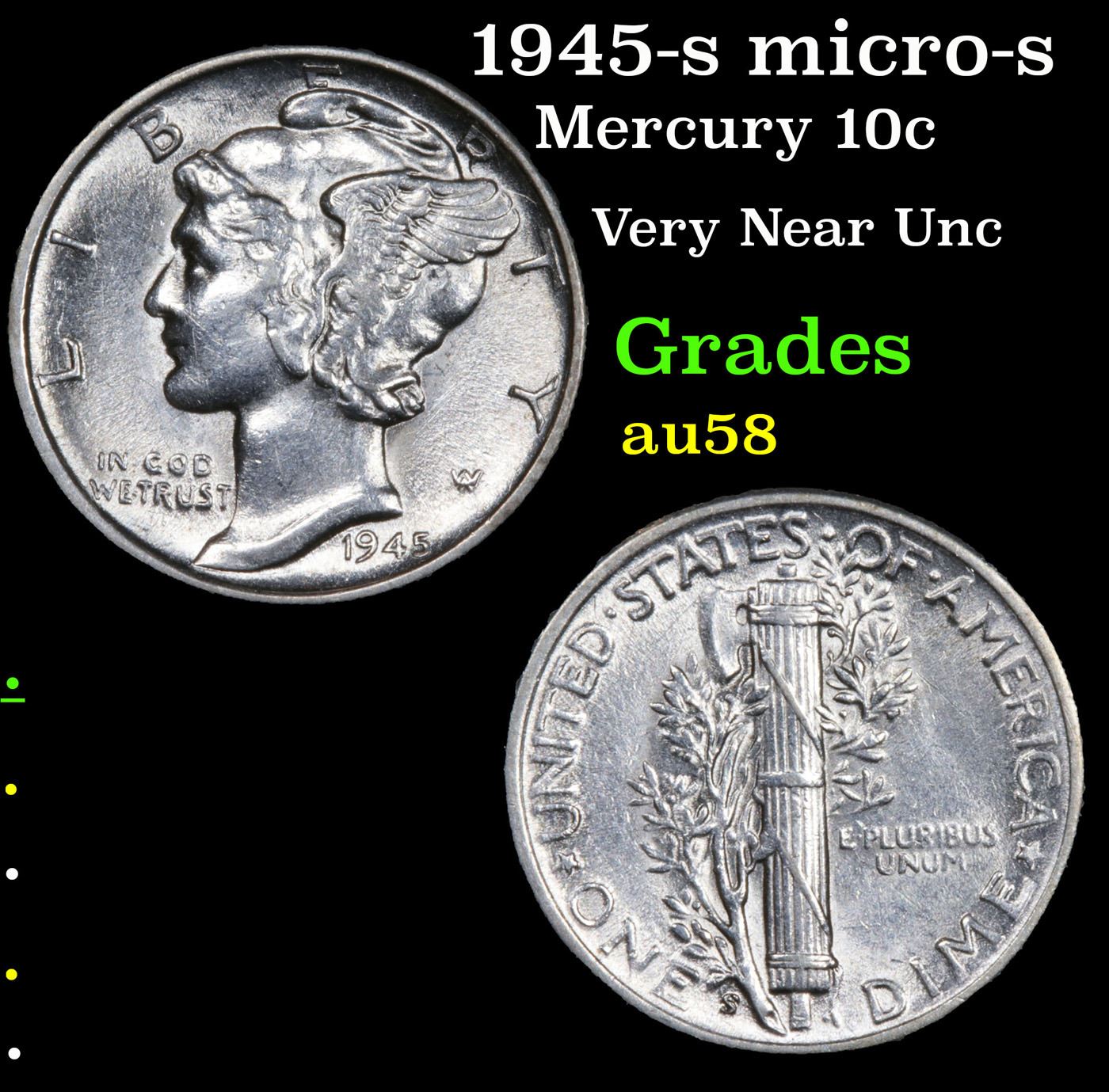 1945-s micro-s Mercury Dime 10c Grades Choice AU/BU Slider.