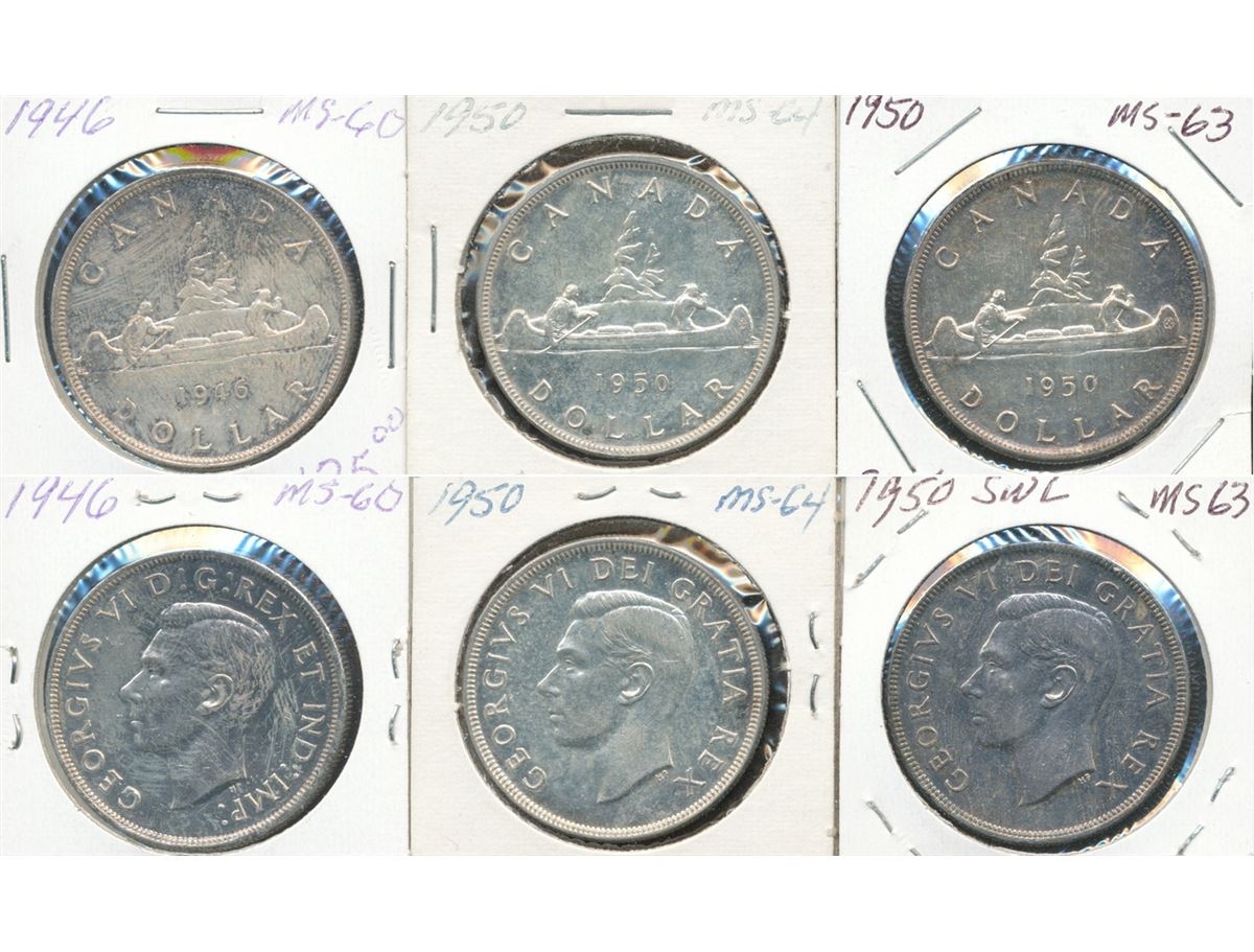 1946 $1, 1950 & 1950 SWL UNC. Lot of 3 coins.