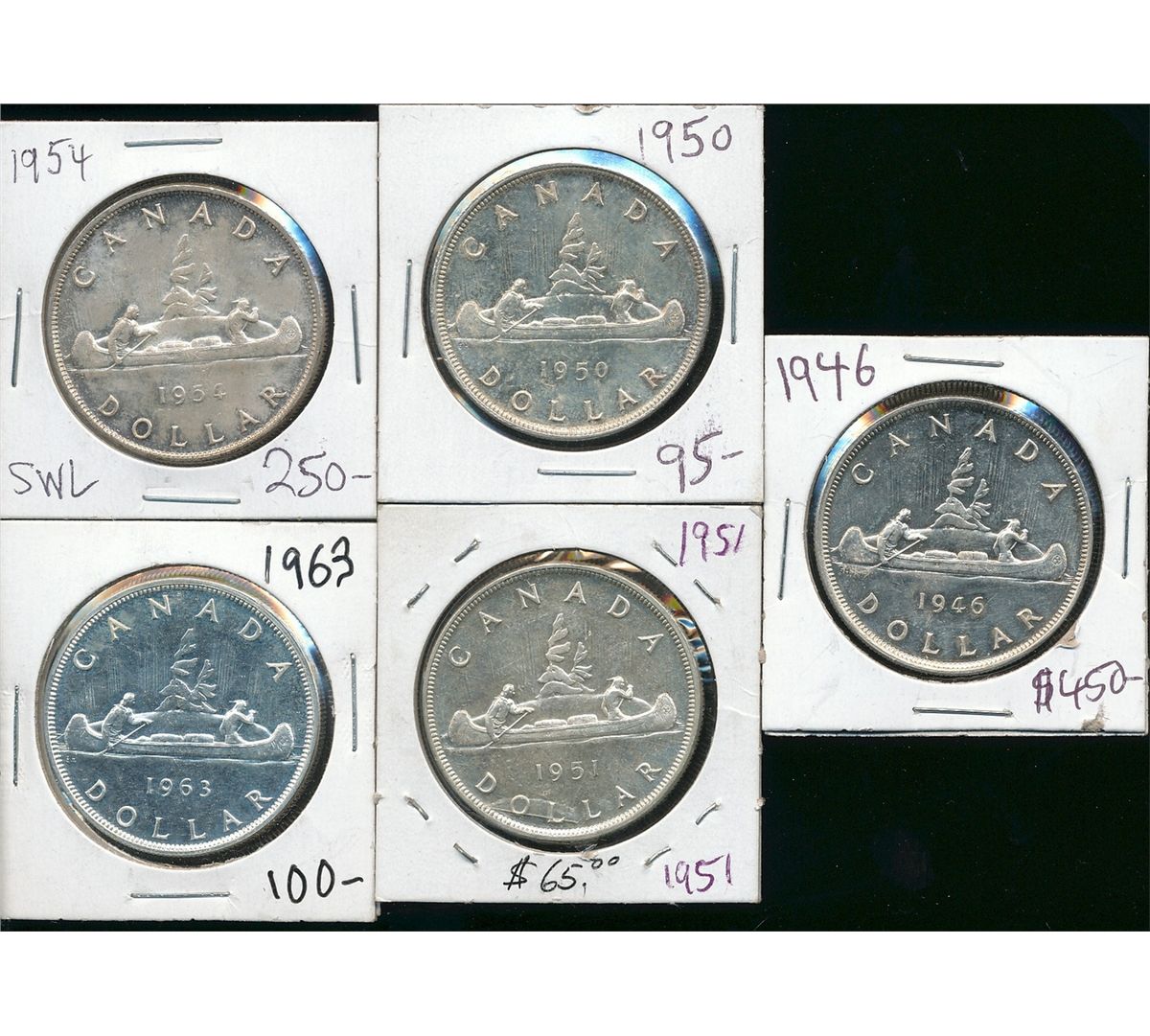 1946 $1, 1954, 1950, 951 & 1963. Lot of 5 pcs MS60 or better.