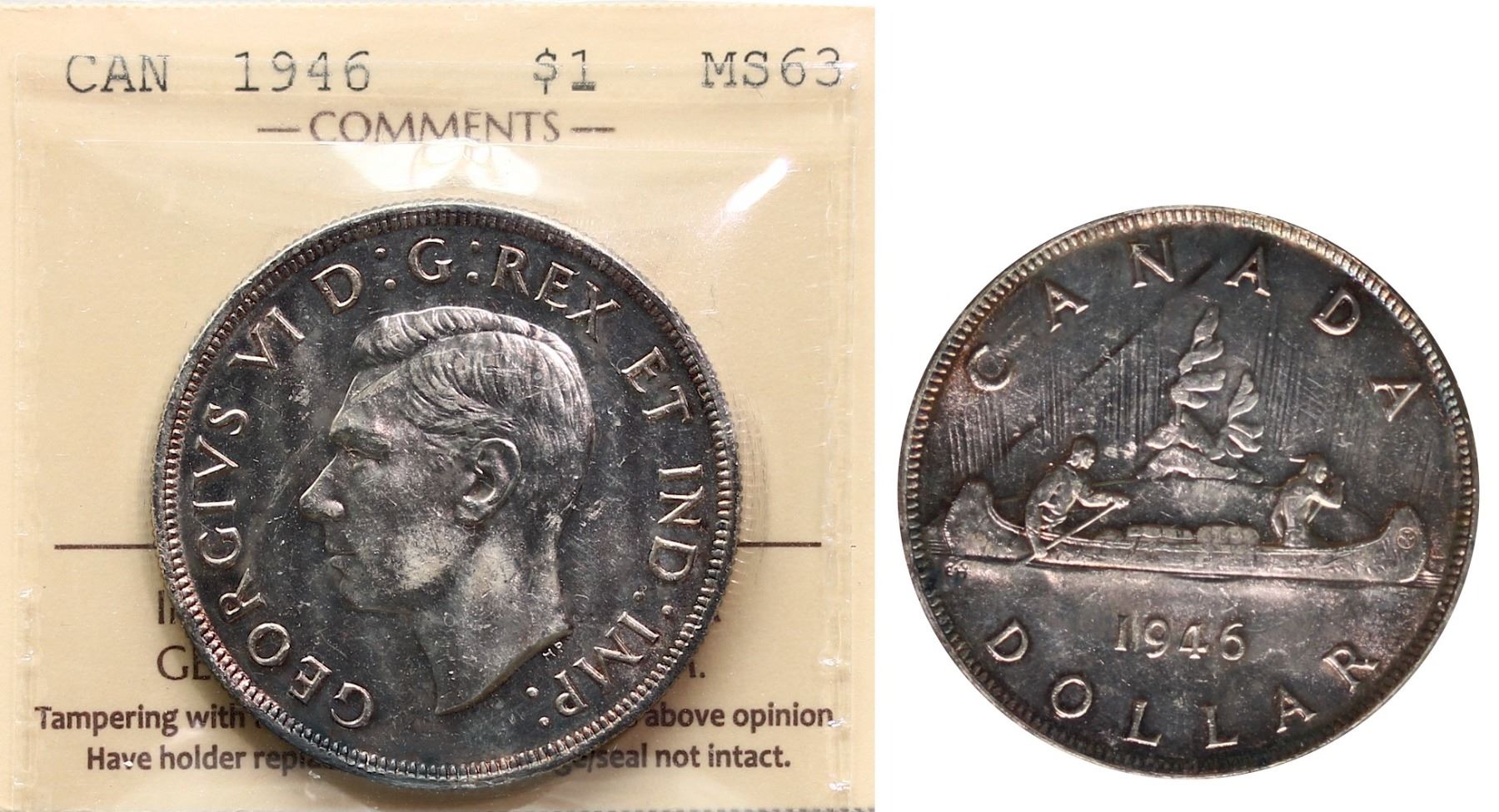 1946 $1 ICCS Choice Mint State-63, Lightly toned. A nice example.