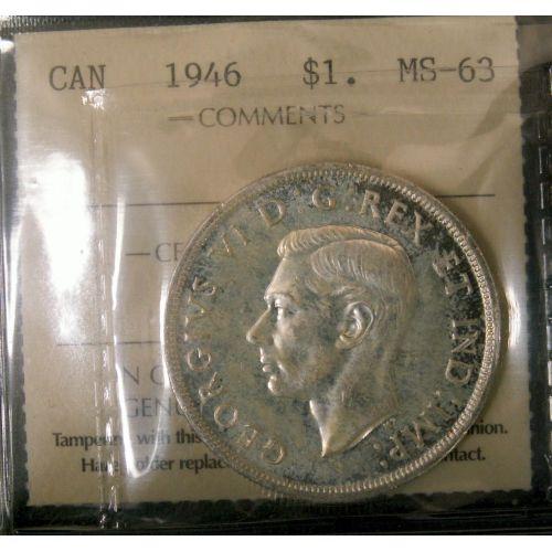 1946 $1 ICCS MS-63, touch of gold over full luster. A nice coin