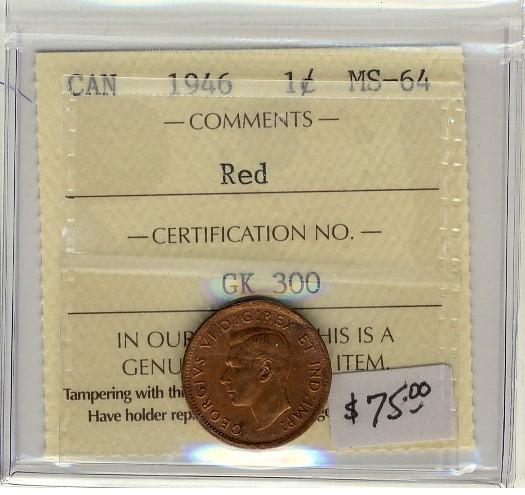 1946 1¢ ICCS MS64 Red