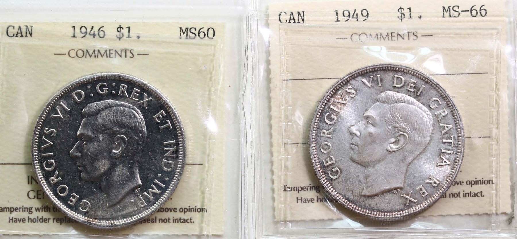 1946 $1 ICCS Mint State-60, 1949 ICCS Superb Gem Mint State-66