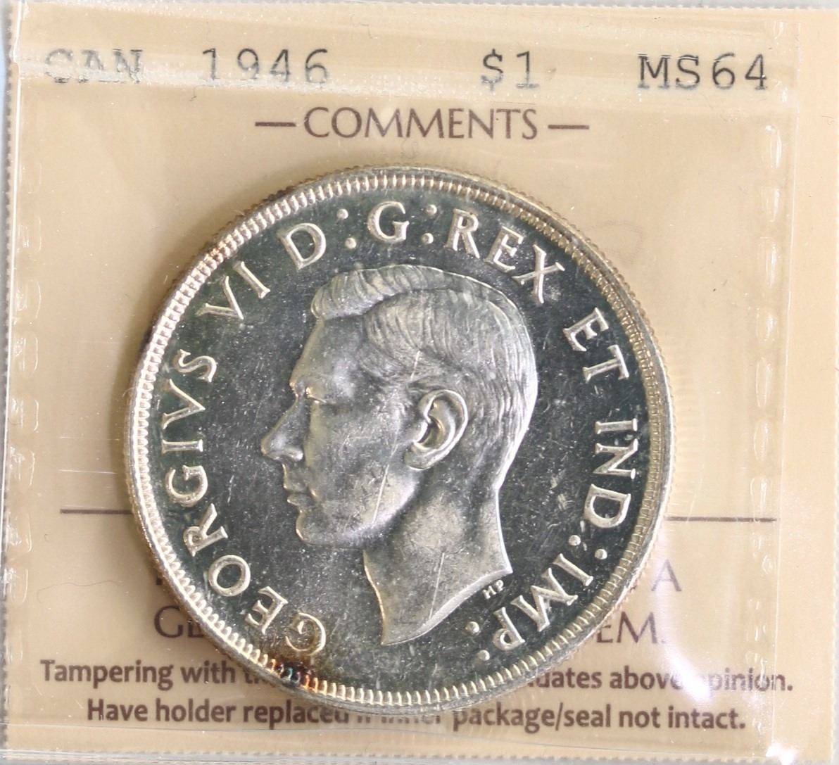 1946 $1 ICCS Very Choice Mint State-64, Brilliant and lustrous. An attractive example.