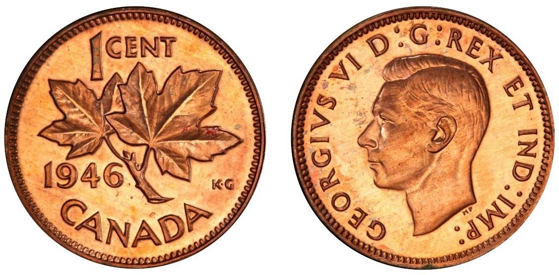1946 1¢ PCGS Superb Gem Specimen-65RD. Blazing full 100% red and lustrous example. A nice Cameo contrast can be seen.