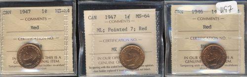 1946, 1947, 1947 ML Pointed 7, all three coins are ICCS graded MS64 Red.