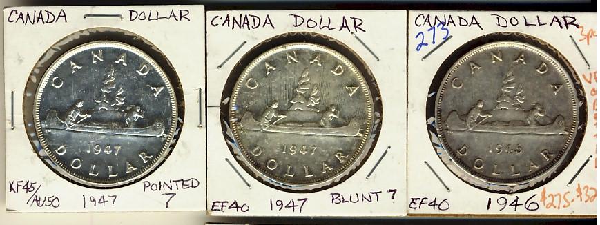 1946, 1947 Blunt, 1947 Pointed $1, VF20 or better, 3 pieces.
