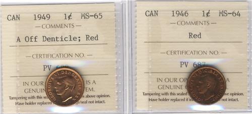 1946 & 1949 A off. Lot of 2 spectacular coins both ICCS certified MS64RD and MS65RD.