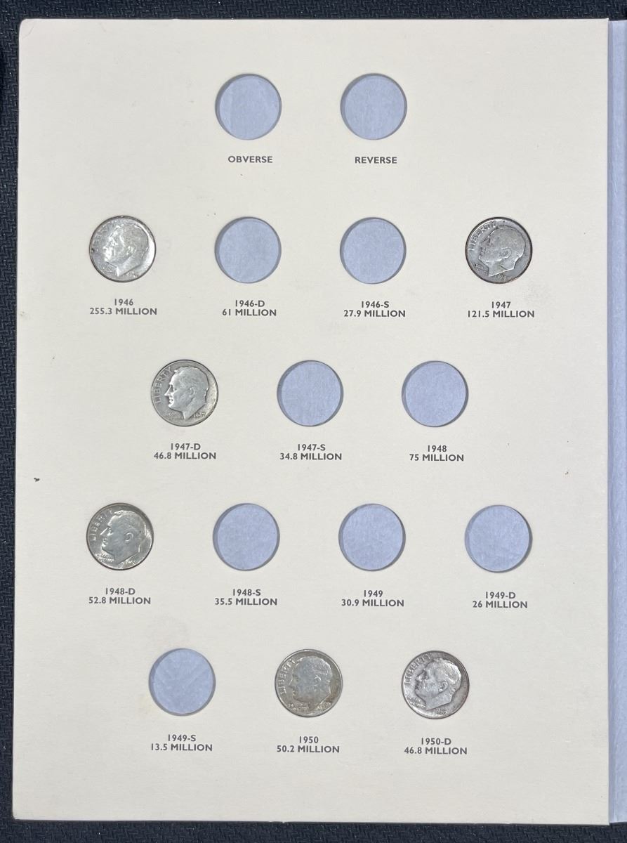 1946-1964 Roosevelt Dime Book / 24 Coins -