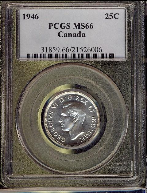 1946 25¢ PCGS MS66. Blast white with great luster. Very flashy!