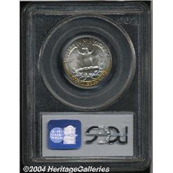 <B>1946<25C> MS67 PCGS.</B></I> Although certainly a common date Washington quarter, this example is perhaps the prettiest example of the issue that this cataloger has ever seen. It is fully and deeply lustrous with no mentionable abrasions on either side. A colorful rainbow of toning clings to the rims on both sides, with shades of champagne, violet, and golden-olive cascading around the edges. Population: 16 in 67, 0 finer (9/04). <BR><BR><B>Important notice:</B> Heritage usually auctions material at the rate of 200-250 lots per hour. On some occasions eBay Live bid software or the Internet may not be able to keep up with the pace of the auction. We recommend placing a realistic absentee bid now as insurance to avoid disappointment. Occasionally the auctioneer may eliminate or reject an eBay Live bid, and the auctioneer may also reopen a lot after the close of the eBay live bidding (usually because we missed an audience bid), and may reject your bid even if it shows you as the winning bidder. By bidding via eBay Live, you agree that Heritage may award the lot to another bidder at its sole discretion under the circumstances described above or any other reasonable circumstances. Since eBay bids are not shown to us until we open the lot on the floor, we treat those bids just like floor bids. In most cases the floor responds before the eBay bid is presented to us, due to Internet lag time, so for consistency we have made it a policy that floor bids are always considered first over tie eBay live bids. Also please note that all Heritage lots purchased through eBay Live carry a 20% Buyer's Premium. Please make sure you read the Terms and Conditions before you bid.