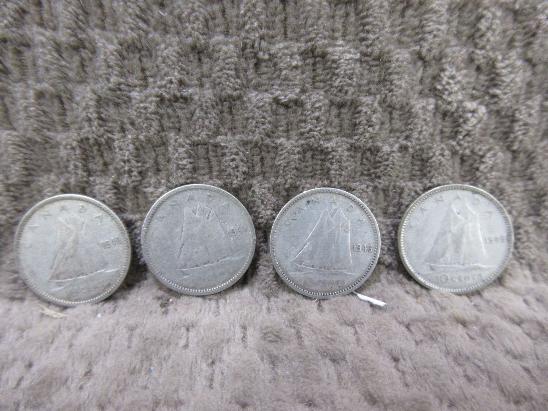 1946 - 4 Canadian 10 Cent Pieces - 800 Silver
