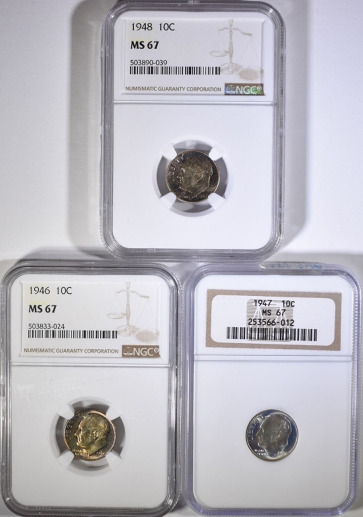 1946, 47, 48 ROOSEVELT DIMES NGC MS-67