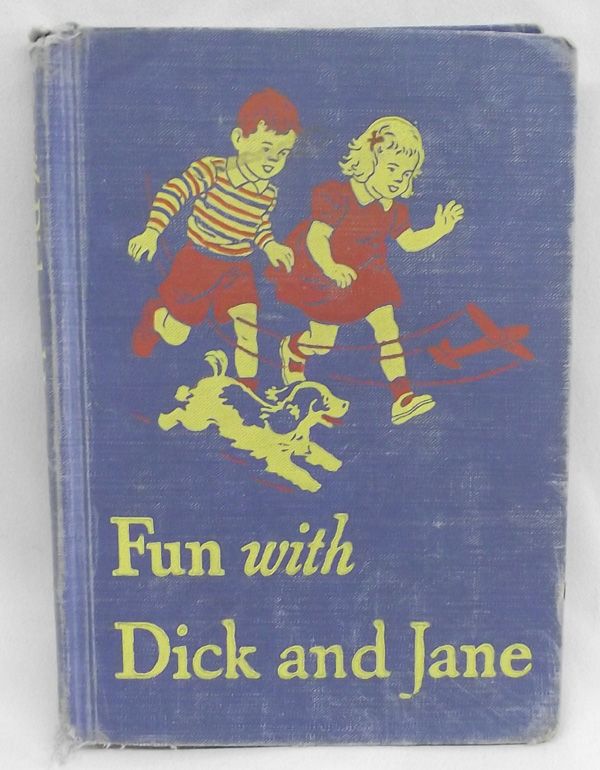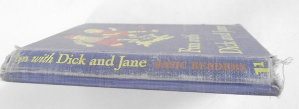 1946-47 Edition Fun with Dick and Jane Book. Here's the real deal, an original reader with very few marks (all small pencil lines) or tears. Just some worn edges on the hard cover. Measures 8''H x 6''W.