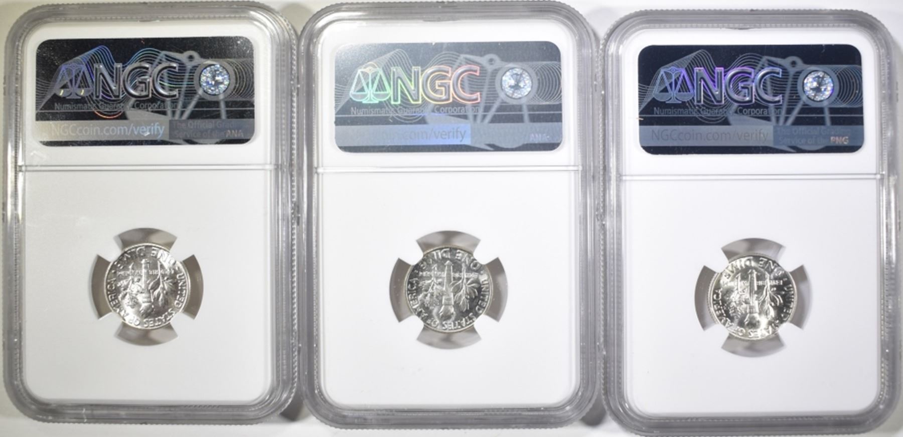 1946, 48 & 51 ROOSEVELT DIMES, NGC MS-66