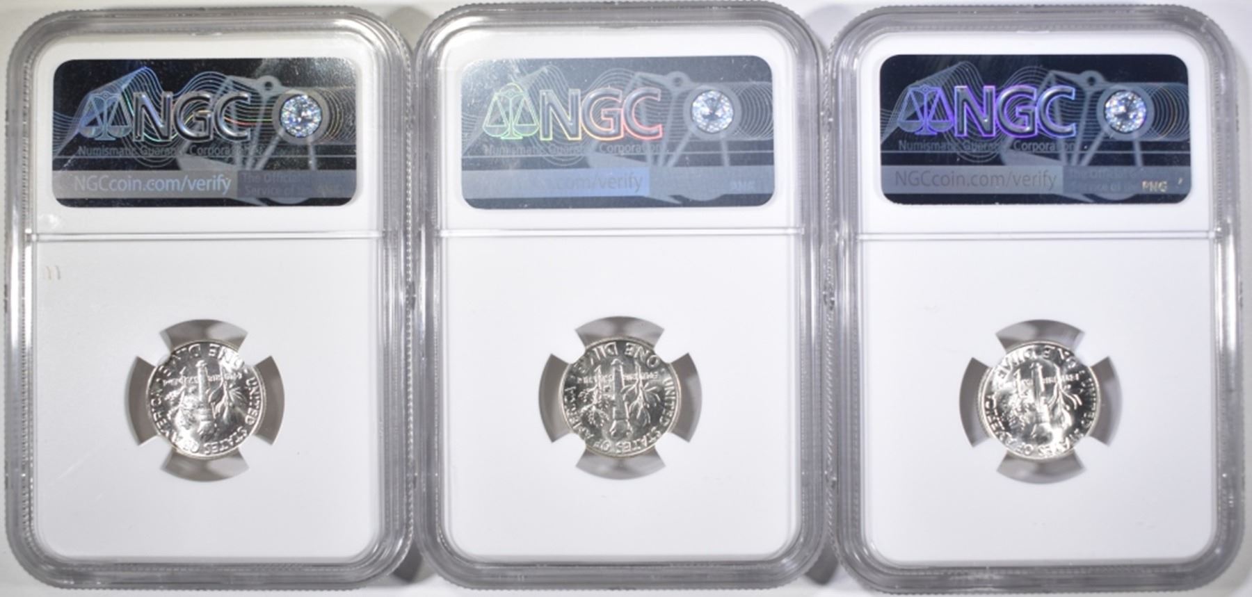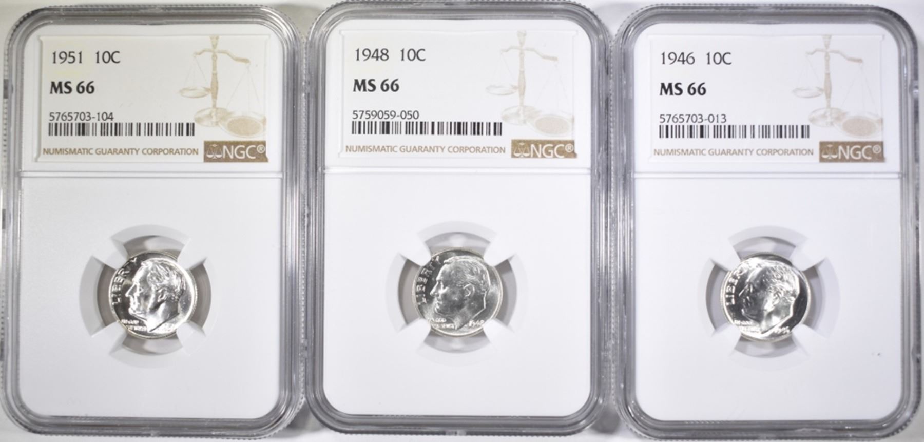 1946,48 & 51 ROOSEVELT DIMES, NGC MS-66