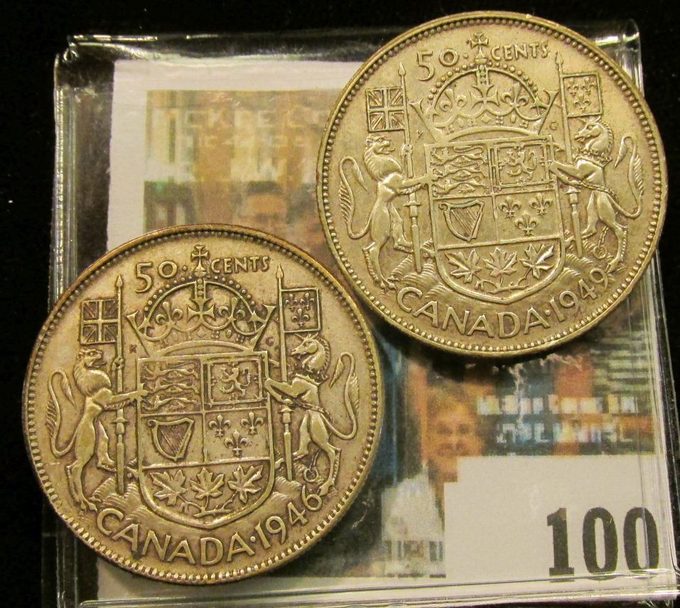 1946 & 49 Canada Half Dollars, VF-EF.