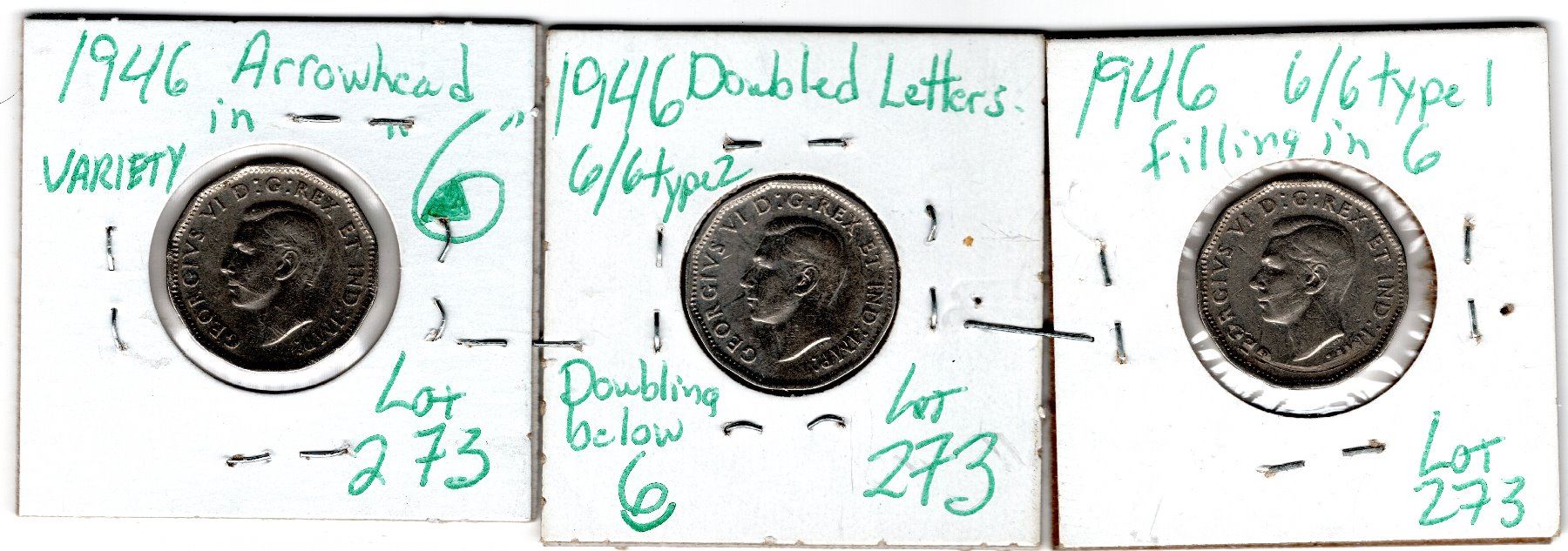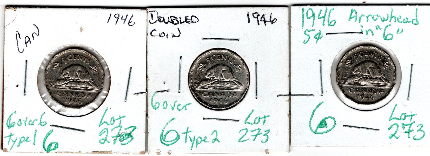 1946 5 CENT VARIETY LOT OF 3 *6 OVER 6 AND ARROWHEAD 6*