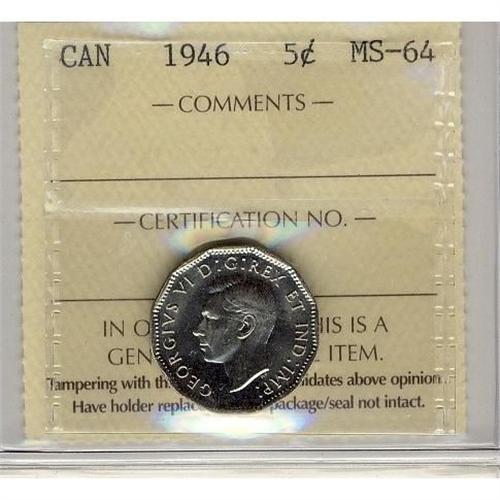 1946 5¢ ICCS MS64.