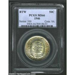 1946 50C Booker T. Washington MS66 PCGS. Dappled olive-orange and russet colors are sprinkled over smooth, fully frosted features. Originally preserved from the time of issue, and carefully at that. Important notice: We expect to be auctioning lots at the rate of 200-250 per hour. Sometimes eBay Premier live bid software cannot keep up with that pace, so we strongly recommend that you place a realistic proxy bid now as insurance to avoid disappointment. Also please note that all Heritage/CAA lots purchased through eBay Premier carry a 20% Buyer's Premium. Please make sure you read the Terms and Conditions.