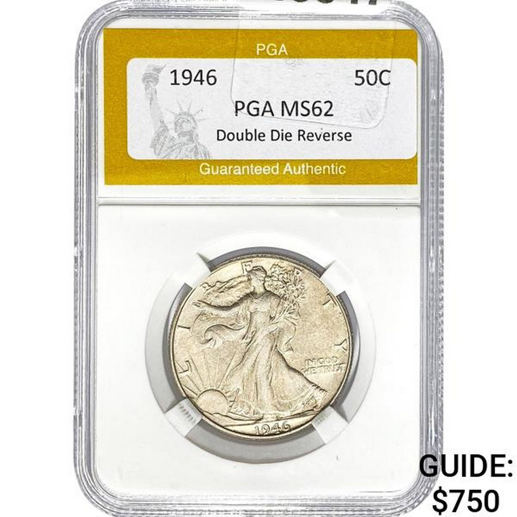 1946 50C Double Die Reverse PGA MS62