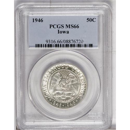 1946 50C Iowa MS66 PCGS, lustrous with a blush of rose