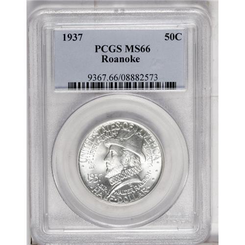 <B>1946<50C> Iowa MS66 PCGS,</B></I> lustrous with a blush of rose in the fields around the eagle; and a <B>1937<50C> Roanoke MS66 PCGS,</B></I> brilliant and solidly struck with great eye appeal.