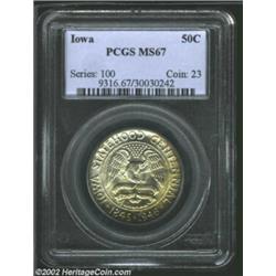 1946 50C Iowa MS67 PCGS. Just a dash of color is noted on this boldly lustrous superb-Gem specimen..