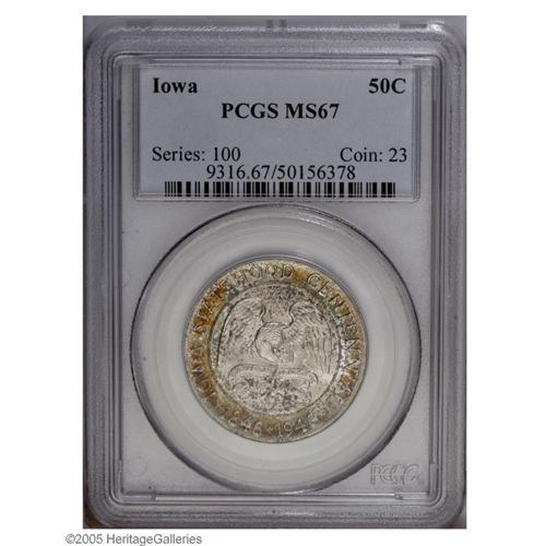 1946 50C Iowa MS67 PCGS. The lustrous surfaces are enh 1946[50C] Iowa MS67 PCGS.