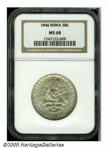 1946 50C Iowa MS68 NGC. Shimmering, completely un