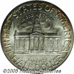 <B>1946 50C Iowa MS68 NGC.</B></I> This example is tied for the finest certified example of the issue. The Iowa Half Dollar is one of the most common of all issues in the commemorative series, although in this lofty grade it is hardly a common coin. The two grading services have only graded 80 examples of this issue as MS68, with none finer. This example has frosty steel color with vivid peripheral rose toning. Population: 24 in 68, 0 finer (2/05).