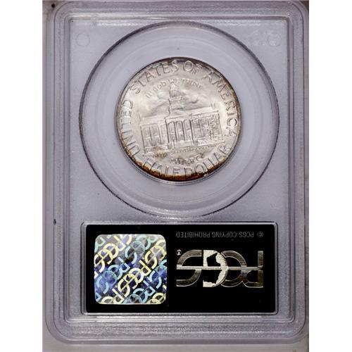 <B>1946<50C> Iowa MS68 PCGS.</B></I> A ring of copper-russet and magenta toning with hints of pastel blue encircles portions of the periphery on each side of this highly lustrous coin. Boldly struck, and exceptionally appealing. In a PCGS green-label holder. None graded finer at either service (2/06).