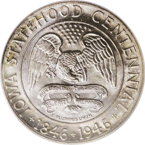 <B>1946<50C> Iowa MS68 PCGS.</B></I> Light pink-champagne patina in the centers melds into light yellow-gold at the rims on both sides of this stunning and equally matched piece. The surfaces approach perfection, as perusal with a high-powered loupe reveals no distractions of even the most minute sort. Population: 57 in 68, 0 finer (8/06).<BR><I>From The Troy Wiseman Collection.</B></I>