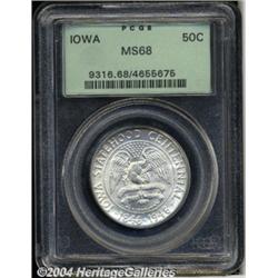 <B>1946<50C> Iowa MS68 PCGS.</B></I> Shimmering, virtually untoned surfaces that come temptingly close to "as struck" status. Even for an Iowa, which has a tendency to come very nice, this piece is extraordinary. Population: 56 in 68, 0 finer (3/04).<BR><I>From The Del Rio Collection, Part One.</B></I> <BR><BR><B>Important notice:</B> Heritage usually auctions material at the rate of 200-250 lots per hour. On some occasions eBay Live bid software or the Internet may not be able to keep up with the pace of the auction. We recommend placing a realistic absentee bid now as insurance to avoid disappointment. Occasionally the auctioneer may eliminate or reject an eBay Live bid, and the auctioneer may also reopen a lot after the close of the eBay live bidding (usually because we missed an audience bid), and may reject your bid even if it shows you as the winning bidder. By bidding via eBay Live, you agree that Heritage may award the lot to another bidder at its sole discretion under the circumstances described above or any other reasonable circumstances. Since eBay bids are not shown to us until we open the lot on the floor, we treat those bids just like floor bids. In most cases the floor responds before the eBay bid is presented to us, due to Internet lag time, so for consistency we have made it a policy that floor bids are always considered first over tie eBay live bids. Also please note that all Heritage lots purchased through eBay Live carry a 20% Buyer's Premium. Please make sure you read the Terms and Conditions before you bid. </span></font></tr></table></td></tr></table>