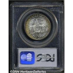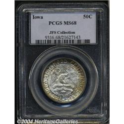 <B>1946<50C> Iowa MS68 PCGS.</B></I> The mint luster is both full and vibrant, with a richly frosted sheen. The originality is unquestionable due to the presence of gorgeous peripheral toning in blended russet, salmon-pink, and orange-gold colors. Fully brought up from an obviously powerful impression, and possessed of awe-inspiring eye appeal. Population: 56 in 68, 0 finer (3/04).<BR><I>Ex: FUN Signature Sale (Heritage, 1/03), lot 9682, which realized $2,415.</B></I><BR><I>From the JFS Collection, the #1 All-Time PCGS Registry Set.</B></I> <BR><BR><B>Important notice:</B> Heritage usually auctions material at the rate of 200-250 lots per hour. On some occasions eBay Live bid software or the Internet may not be able to keep up with the pace of the auction. We recommend placing a realistic absentee bid now as insurance to avoid disappointment. Occasionally the auctioneer may eliminate or reject an eBay Live bid, and the auctioneer may also reopen a lot after the close of the eBay live bidding (usually because we missed an audience bid), and may reject your bid even if it shows you as the winning bidder. By bidding via eBay Live, you agree that Heritage may award the lot to another bidder at its sole discretion under the circumstances described above or any other reasonable circumstances. Since eBay bids are not shown to us until we open the lot on the floor, we treat those bids just like floor bids. In most cases the floor responds before the eBay bid is presented to us, due to Internet lag time, so for consistency we have made it a policy that floor bids are always considered first over tie eBay live bids. Also please note that all Heritage lots purchased through eBay Live carry a 20% Buyer's Premium. Please make sure you read the Terms and Conditions before you bid. </span></font></tr></table></td></tr></table>
