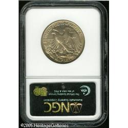 <B>1946 50C MS67 NGC.</B></I> A thin veil of gold toning adds eye appeal to this lustrous and sharply defined Walker. PCGS and NGC have only certified one finer example of this date. Population: 16 in 67, 1 finer (1/05). Lot:8188