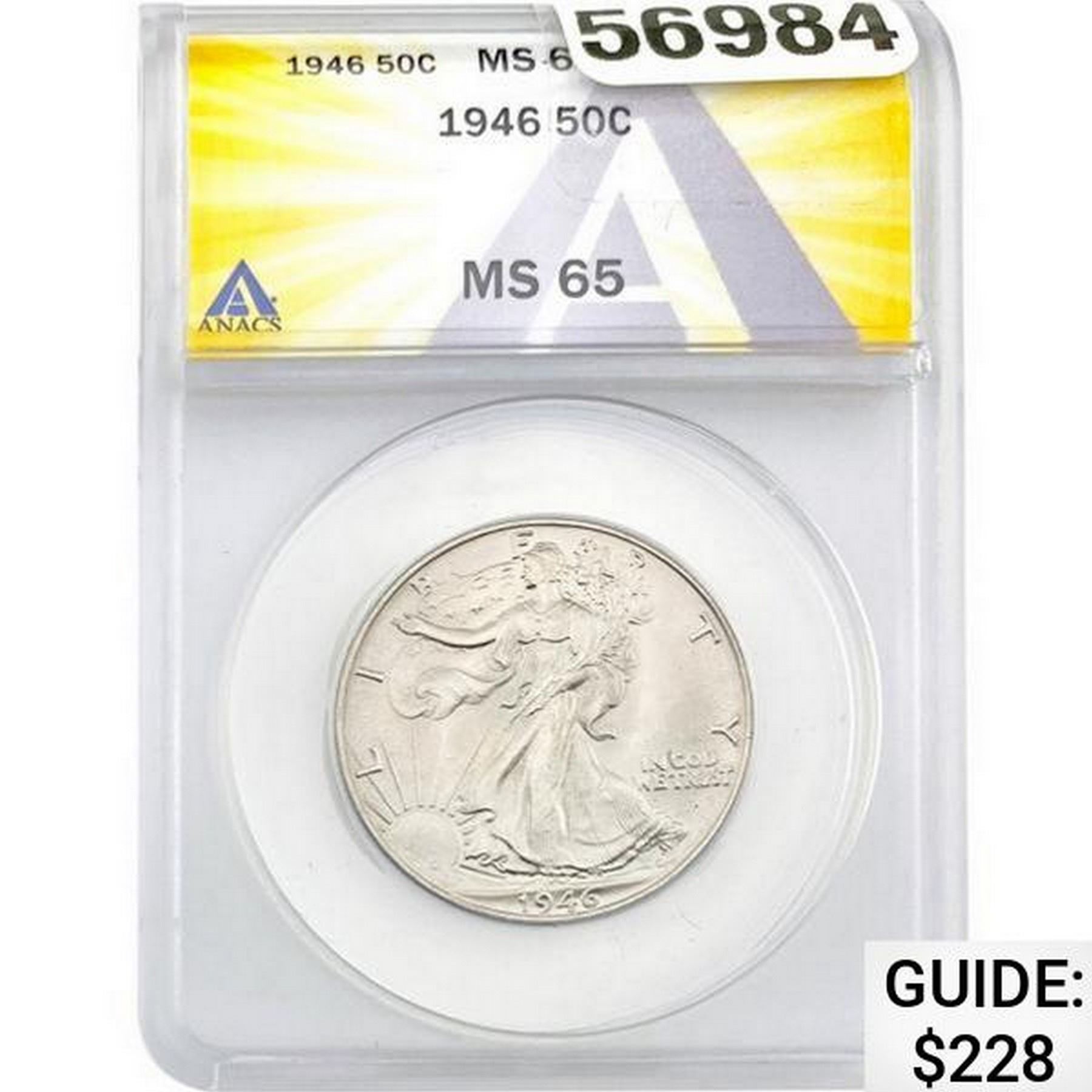 1946 50C Walking Liberty Half Dollar ANACS MS65